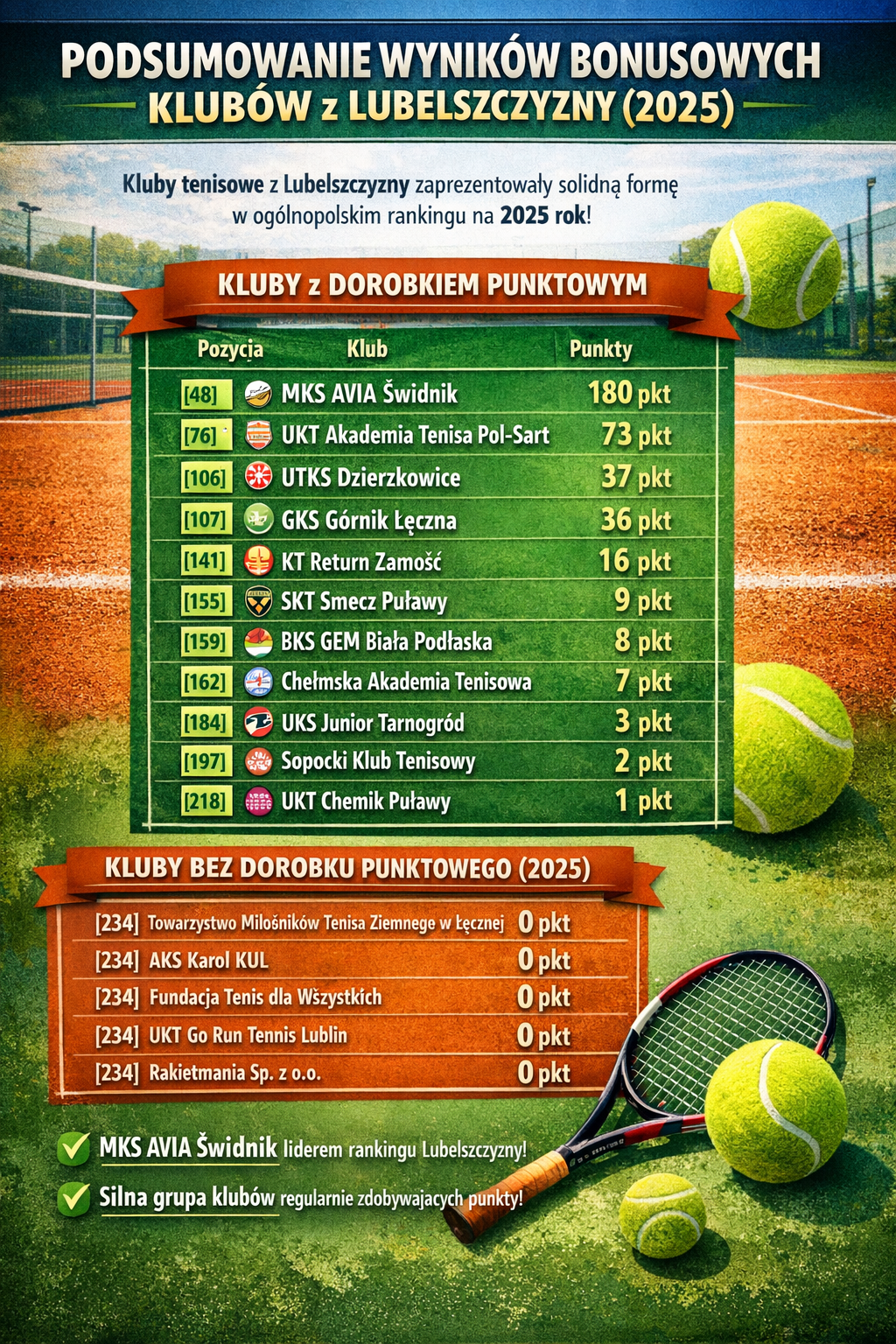 Prezentujemy pełne podsumowanie klasyfikacji klubów tenisowych z województwa lubelskiego,...